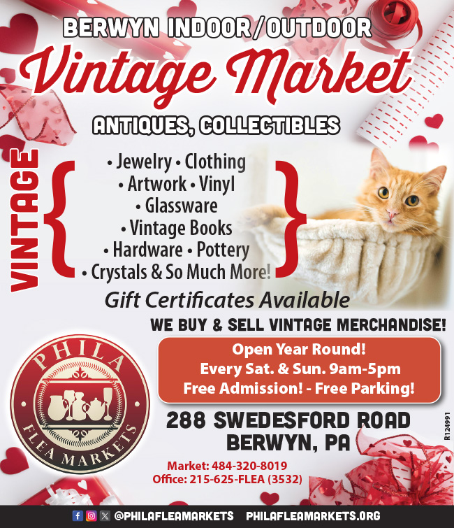 Phila Flea Markets (AKA The Philly Flea) is the longest running organized Flea Market group in Philadelphia since 1985. We organize the largest indoor/outdoor vintage flea markets that travel to various Center City Philadelphia neighborhoods April thru October. Also, our indoor market every Saturday & Sunday year round on the Mainline at the Valley Fair Shopping Center, 270 Swedesford Road, Berwyn, PA featuring a wide variety of merchandise but with an accent on antiques & vintage! We are also every Sunday April thru November outdoors at Franklin Mills, 90 Franklin Mills Blvd, NE Phila, PA. All markets are handicap accessible!